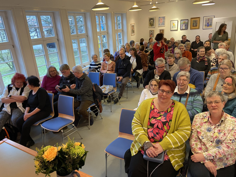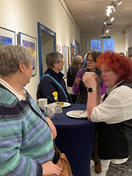 Auch wenn die Themen z.B. von "Menschen im Bild" über "Landschaften", "Meditatives Weihnachtsmalen", sowie "Metamorphosen" bis hin zu Technik orientierten Kursen wie z.B. "Pastellfarben" oder "Mixed Media" reichten, so stand doch die Fokussierung auf den "Augenblick", auf das persönliche, individuelle Erleben und Innehalten im Mittelpunkt des kreativen Schaffens. Und so sind auch unter identischen Themen außergewöhnlich viele, ebenso individuelle wie in jeder Hinsicht unterschiedliche Werke entstanden. Dieses betrifft über die äußere Gestaltung und Materialauswahl hinaus insbesondere die inhaltlichen Schwerpunktsetzungen und Bildaussagen. Die Lewer Däle, so Ulrike Bosse in ihrem Dank an den Kulturverein, schaffe einen wunderbaren Ort der Freiheit, der diese malerische und persönliche Entfaltung ermögliche. Die Vielfalt und Individualität der ausgestellten Werke boten reichlich Gesprächsstoff, so dass in heiterer bis ausgelassener Stimmung bei Kaffee und leckerem, selbstgebackenen Kuchen bis in die frühen Abendstunden in der gesamten Lewer Däle Galerieatmosphäre herrschte.