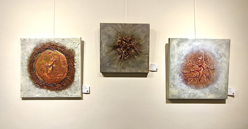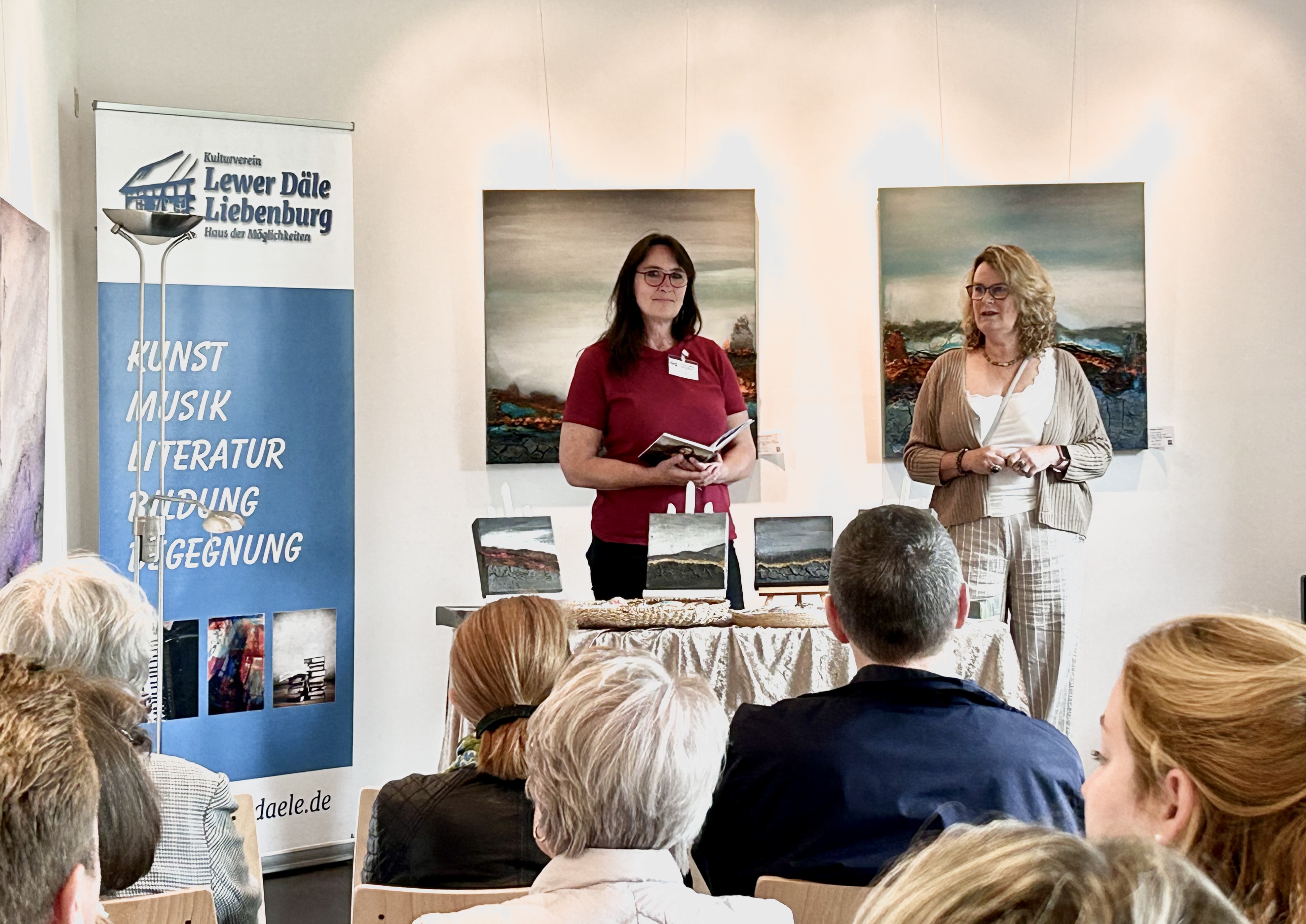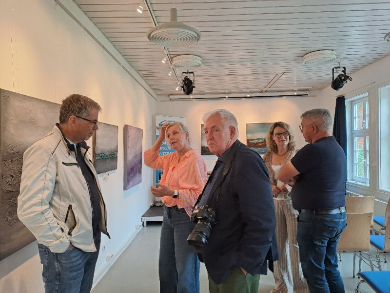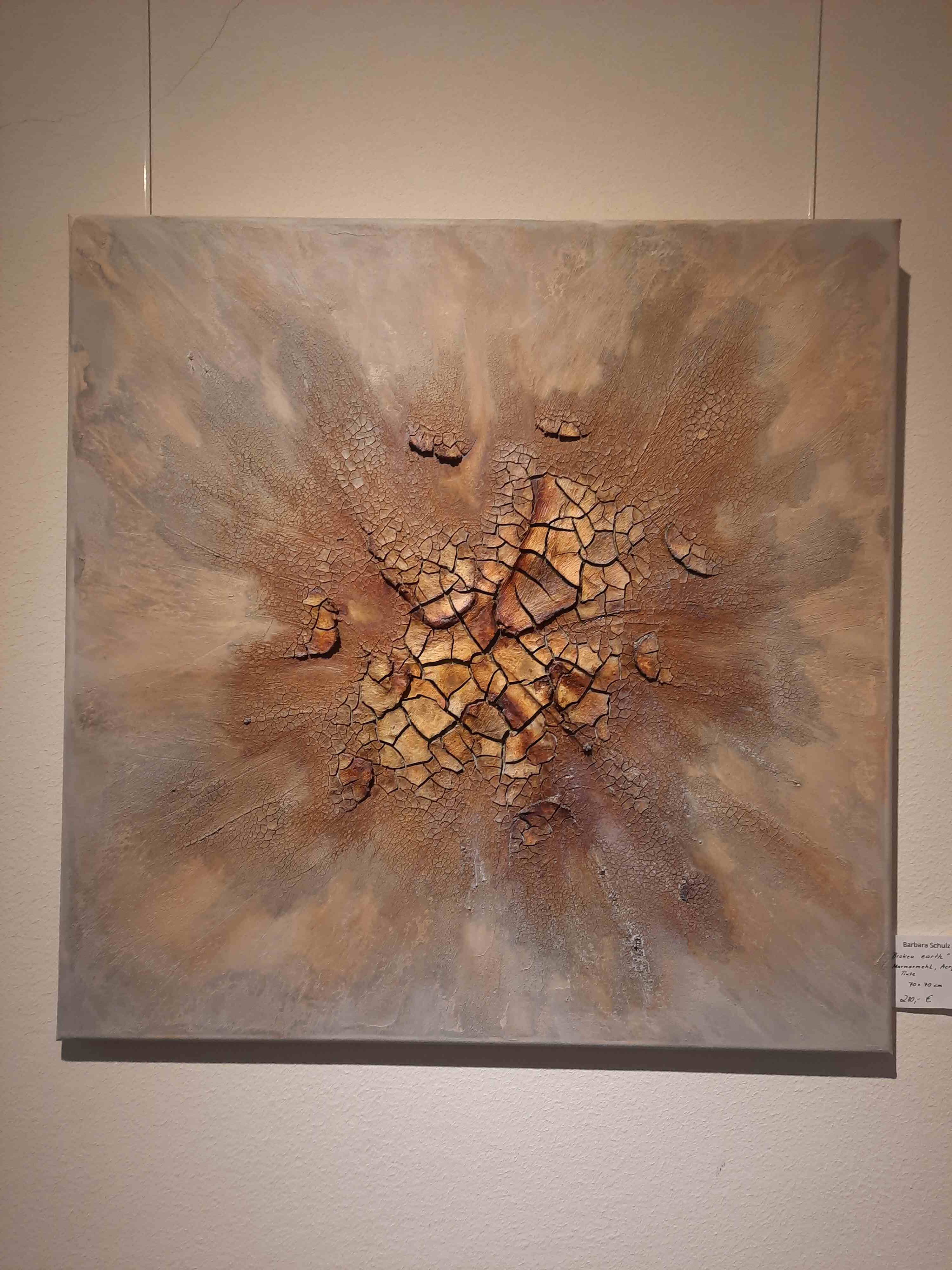 Die wunderbaren, abstrakten Bilder von Barbara Schulz aus Ribbesbüttel können erst richtig gesehen werden, wenn man die Geschichte der Künstlerin dazu kennt. Als Erzieherin hat sie sich schon immer mit kindlicher Kreativität befasst. Ihre eigene entstand allerdings erst aus einer persönlichen Krise heraus: Der Titel ihrer Vernissage " Farbige Aufbrüche " passt nicht nur ausserordentlich gut zu den Strukturen und Verkrustungen ihrer großformatigen Leinwandbilder, er symbolisiert auch wie Verdecktes hervorbricht und sichtbar wird. Der Aufbruch in eine neue, gesunde Zeit mit diesen Bildern, mit ihrer Kunst ist für Barbara Schulz elementar geworden. Malen ist Heilung und die Kraft ihrer Bilder beeindruckt nachhaltig. Viele verschiedene Materialien wie Marmormehl, Pappe, Sumpfkalk und Acrylfarben kommen bei Barbara Schulz auf die Leinwand. Schicht um Schicht und mit viel Intuität entwickelt sie ihre Bilder. Dabei entstehen großartige Kunstwerke, aber auch Spuren ihres Lebens.