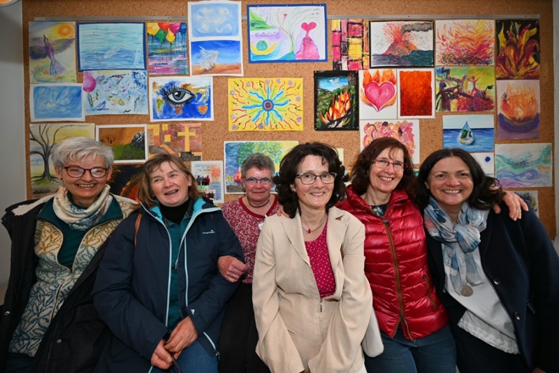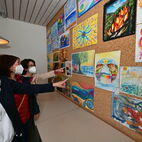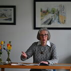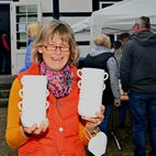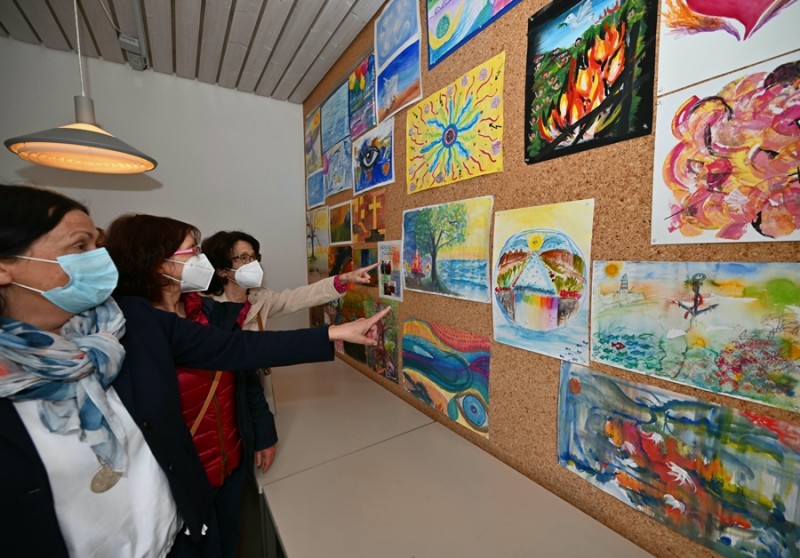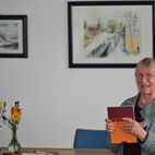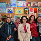 Auf dem Weg zu Lesung und Musik kam man an den Bildern der Donnerstagsmalgruppe vorbei, die sich einmal im Monat zum Malen trifft. Die vielen diversen, kleinen und großen Gemälde in verschiedenen Techniken werden noch bis Ende Mai zu sehen sein. Eine besondere Collage bot die erst seit kurzem aktive Malgruppe von Dr. Ulrike Bosse: Die Kursteilnehmerinnen des Workshops "Malen, Musik und Meditation" stellten ihre Werke zu den 4 Elementen Feuer, Wasser, Erde und Luft aus. Man sieht den Gemälden die Begeisterung der Malerinnen bei ihrer Arbeit förmlich an, geballte Lebensfreude mit expressiven Farben! Die KunsthandwerkerInnen, die Honig aus eigener Herstellung, selbstgestaltete Karten, schöne Dinge aus Stoff, Fahrradschläuchen und Ton sowie Gemälde und Bücher im Gartenbereich anboten, rundeten das kulturelle Angebot ab.