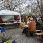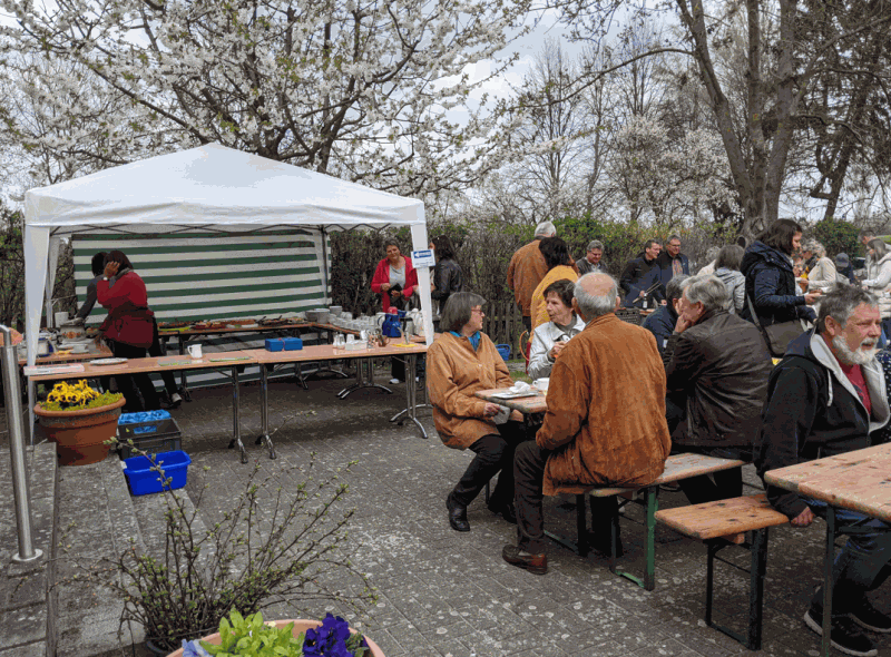 Am 24.04.22 konnten wir wieder das Kirschblütenfest feiern. Endlich!! Kultur und Geselligkeit, bei zumindest trockenem Wetter: das tat richtig gut! Plaudernde Menschen im Garten bei Bratwurst oder Kaffee und Kuchen sowie Kultur in den Räumen, wenn auch noch mit Maske.