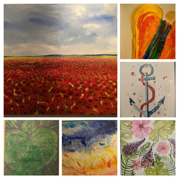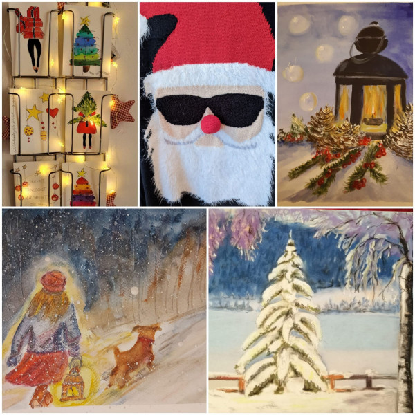Auf den Fotos sind zusätzlich die Bilder der "Adventskalender-Aktion" abgebildet. Jeden Tag im Advent galt es, ein virtuelles Türchen zu öffnen. So konnten die Maler:innen der whatsapp-Gruppe sich täglich an den vielfältigen Bildern erfreuen.