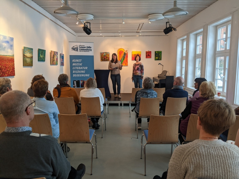 Die erste Vernissage im neuen Jahr war den Künstlerinnen aus Liebenburg und Umgebung gewidmet. Sandra Armbrecht, Dagmar Roschanski, Elisabeth May, Hilke Gerhold, Simone Bartjes, Andrea Klein, Janina Bawey, Ingrid Jesussek, Kathrin Thomsen und Katrin Brüninghaus stellten Ihre Werke aus, die teilweise in den Mal-Kursen im Kulturverein entstanden sind. Dabei war wieder einmal die Vielfalt der Motive und deren farbige Umsetzung toll anzusehen! Das inspiriert doch immer sehr gleich zum Pinsel zu greifen. Wer sich hier angesprochen fühlte, erhielt durch die Ausführungen der neuen Kursleiterin Dr. Ulrike Bosse einen guten Einblick in die Konzeption ihrer Kurse. Die ausgebildete Maltherapeutin berichtete mit viel Herzblut, dass der meditative Ansatz in ihren Kursen einen großen Raum einnimmt. Malen ist die ureigene Ausdrucksform des Menschen und so wichtig für Geist und Seele. Die Aussage "ach, ich kann gar nicht malen" lässt sie deshalb so überhaupt nicht gelten. Jeder ist ein Künstler und schöpft aus dem Schaffensprozess Kraft und Freude. Auch den Begriff der Kunst hinterfragt Ulrike Bosse: Kommt Kunst von Können oder ist ein Bild nur etwas wert, wenn es teuer verkauft wird? Nein, wenn zwischen dem Betrachter und dem Kunstwerk etwas ausgelöst wird, wenn das Werk im Betrachter eine Reaktion hervorruft, dann ist es ein Kunstwerk. Die Bilder der Liebenburger Talente haben beim Publikum eine positive Resonanz erhalten und die Freude, sich im Nachgang bei Kaffee und Kuchen zum Kunstplausch zu treffen, war besonders groß!