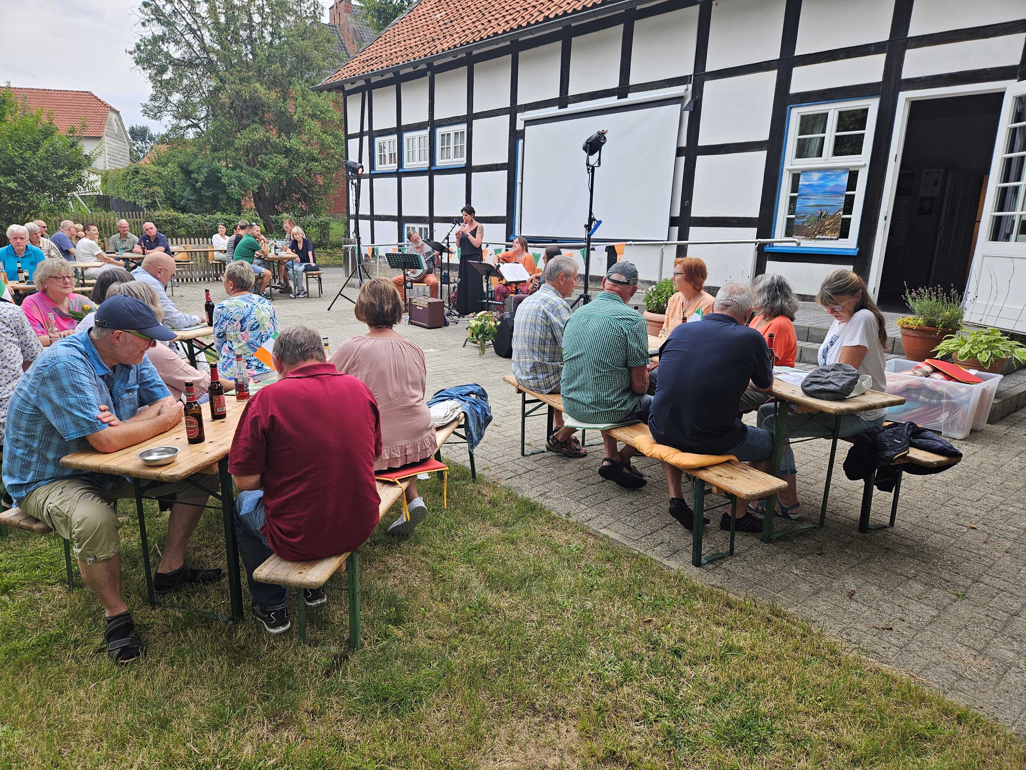 Der diesjährige Sommernachtstraum führte uns auf die grüne Insel: Die Liebenburger Band Hotchpotch begleitete die Reise musikalisch und traf mit den gefühlvollen irischen Balladen und Folksongs genau den Geschmack der zahlreichen Gäste. Bei Guiness und Kilkenny-Bier sowie einem leckeren irischen Lammgericht wurden nette Gespräche geführt und die ausliegenden Hefte des irischen Tourismusverbandes durchgeblättert bevor die Band Hotchpotch ein weiteres Mal aufspielte. Zum Glück blieb es trocken, man konnte den Abend gemütlich ausklingen lassen und es gab schon Überlegungen, wohin uns der Sommernachtstraum im nächsten Jahr musikalisch und kulinarisch führen wird. Holger Schütte vom Vorstand wird es sicherlich wiederum gut gelingen ein ansprechendes Programm auf die Beine zu stellen. Ein besonderer Dank gilt den vielen Helfern der Veranstaltung!